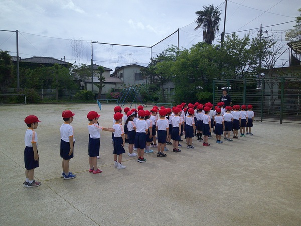 初めての体育では、並び方や集まり方、「立つ・座る」の基本動作を練習しました。また、遊具の安全な使い方についても学び、楽しく活動するための約束を確認しました。これからの体育が楽しみです(^-^)